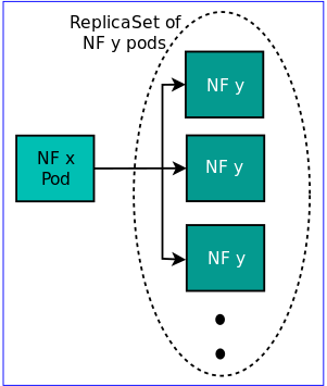 Each NF node is a replicaSet, and a service chain is a graph of interconnected replicaSets. In that sense, a service chain is a generalization of the Kubernetes deployment abstranction.