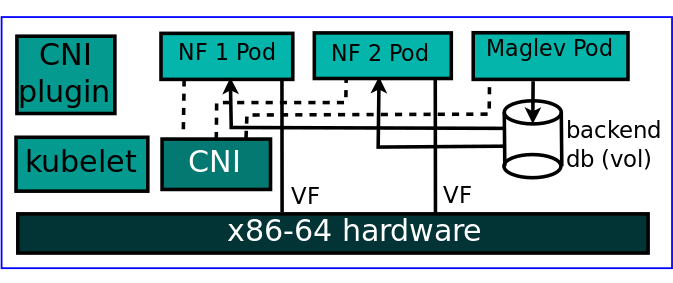 Currently, the load balancers like iptables, IPVS are part of the linux kernel, or utilize the linux kernel. Now, we need a load balancer which can be made part of the DPDK-based network stack. Maglev [14][15] is a load balancer used by Google for its Kubernetes Network Load Balancer service. Maglev uses consistent hashing to balance load evenly across its backend pods. It prioritises load balancing over disruption and tries to balancer load as evenly as possible among the backends.